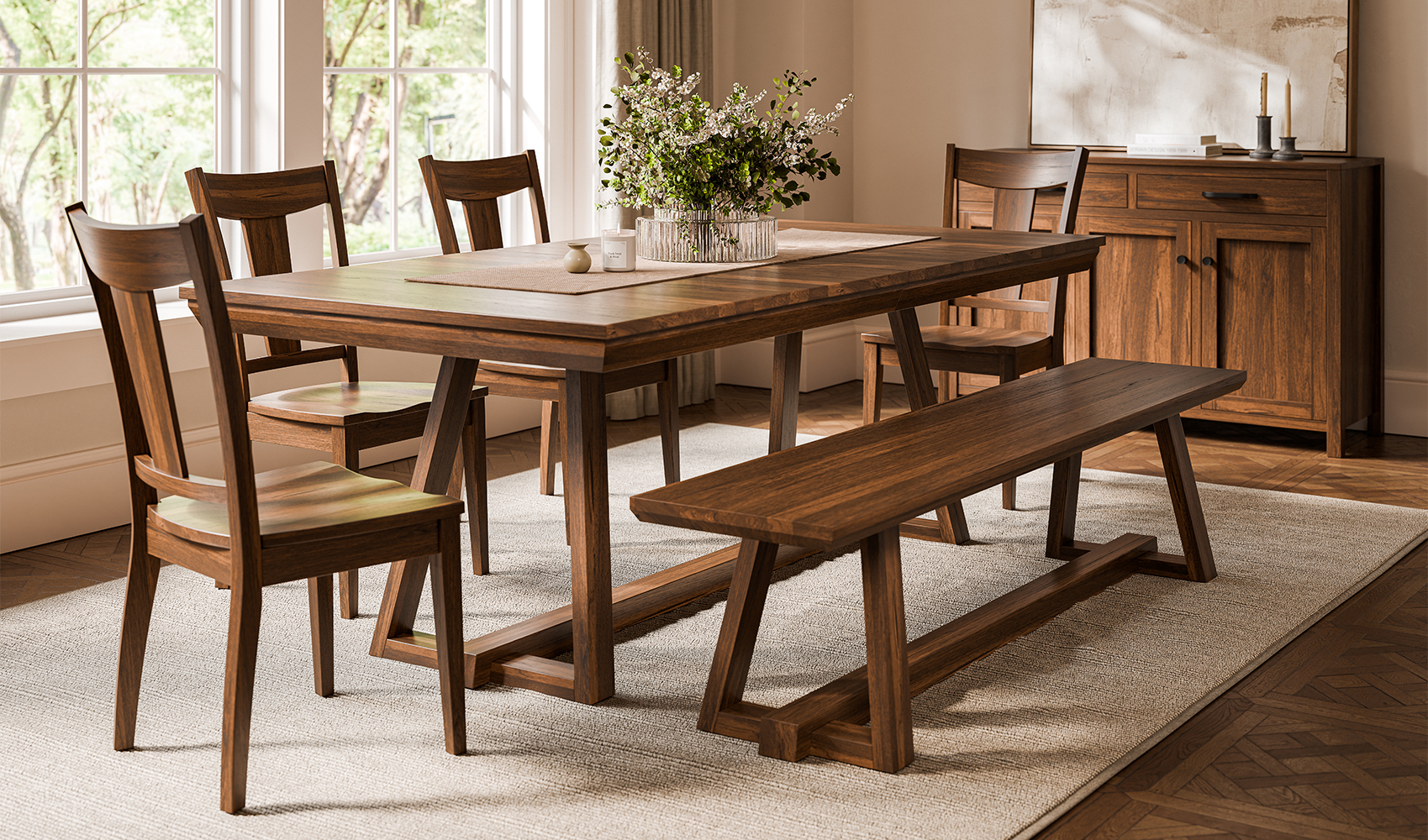 A strong dining set turns quick meals into time together. Solid wood, American-made dining room furniture brings dependable strength, comfortable seating, and a warm look that fits everyday use.