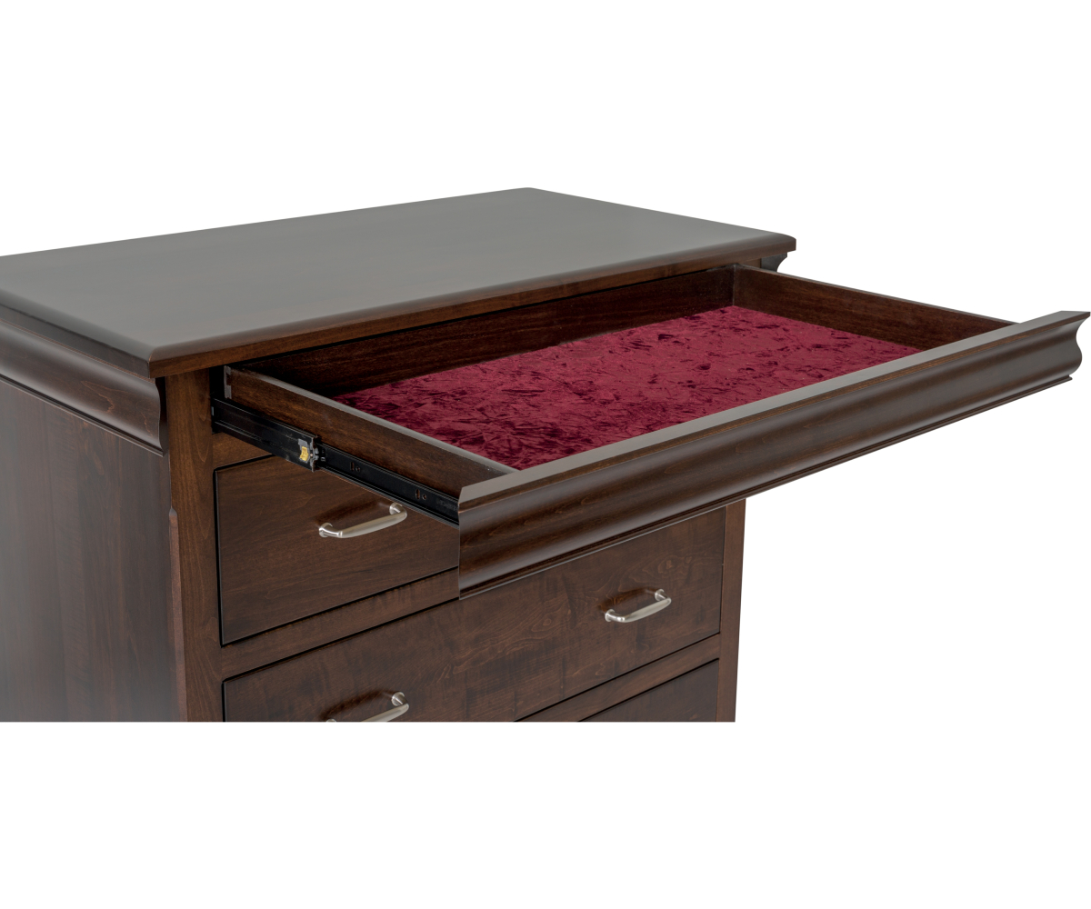 Features: • Dovetailed drawers • Full extension drawer slides • Hidden compartment in molding
