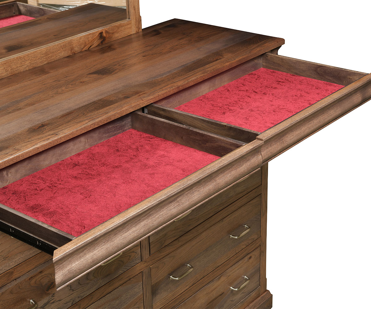 Dimensions: Dresser: 60¾”W x 20⅝”D x 48″H Mirror: 44¾”W x 36½”H