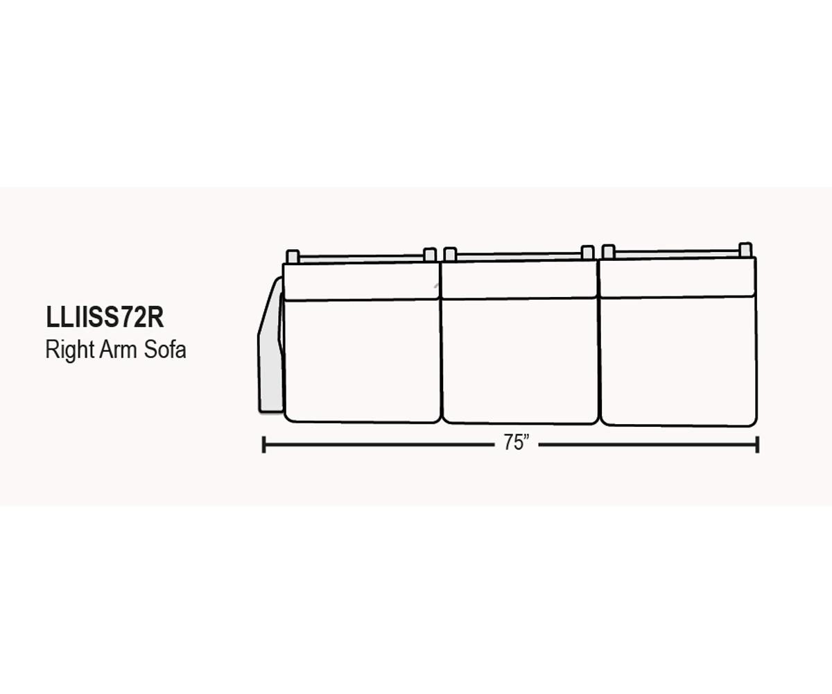 Dimensions: Right Arm Sofa: 75″W x 34″D Sectional Corner: 45″ Wall Space Left Arm Love Seat: 51″W x 34″D