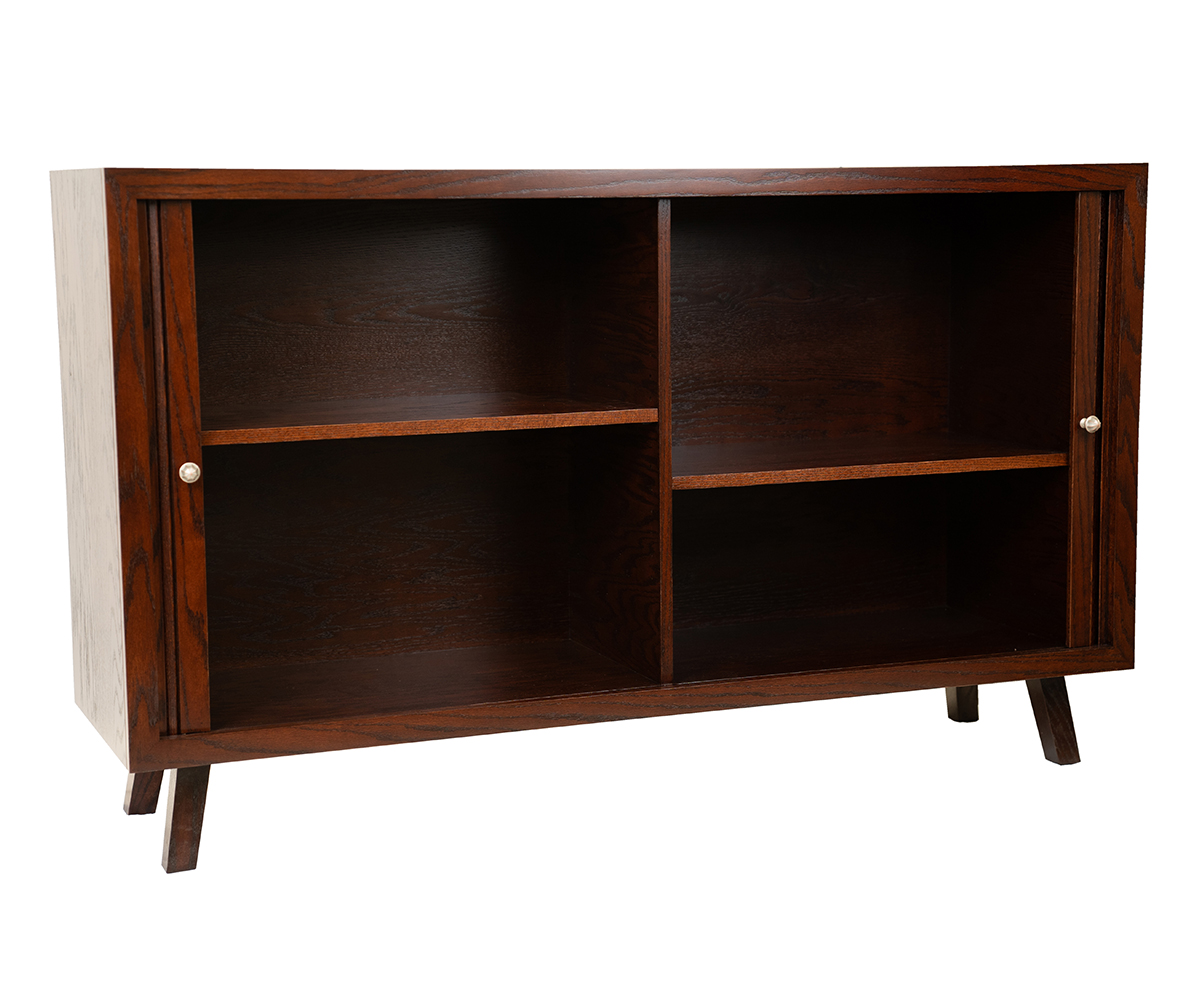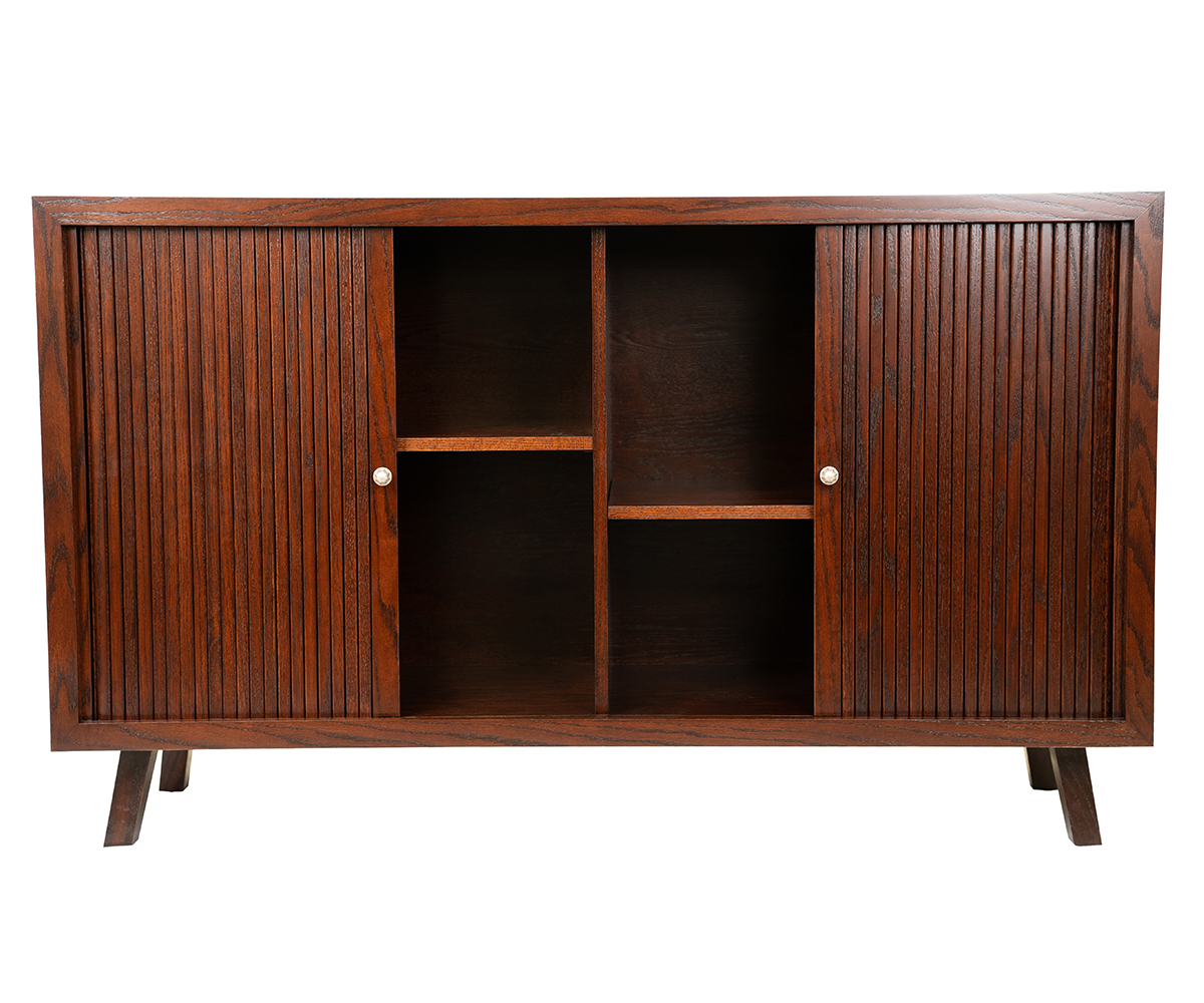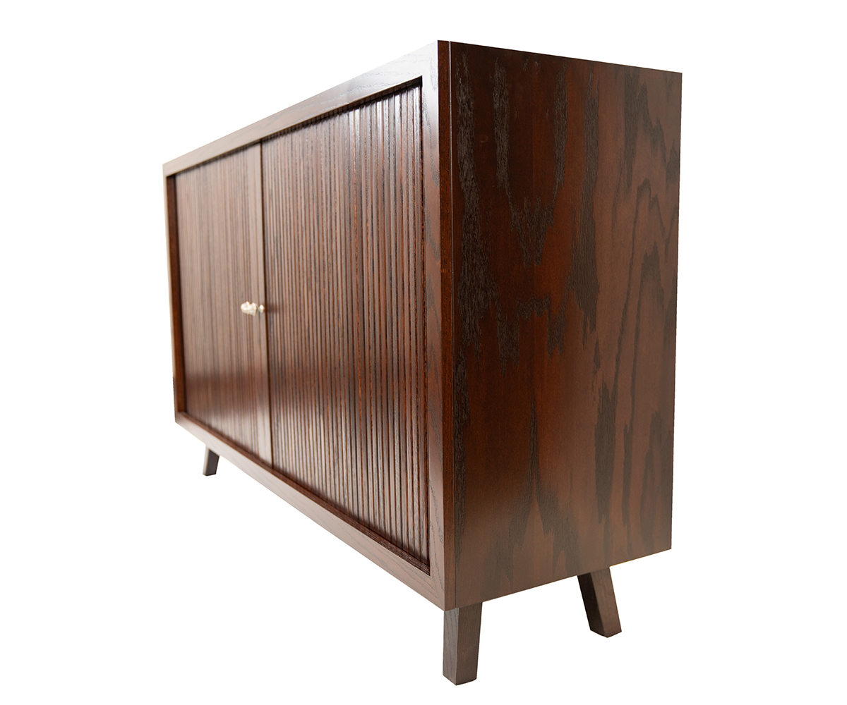 Features: • Tambour doors slide back along the sides • Two adjustable shelves behind the doors